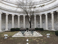both Ionic and Doric columns. Inside the memorial is a tree, with the two black